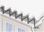 звису покрівлі , так званий водовідбійник . Кабель укладається " доріжкою " у кілька паралельних ліній в підвісну жолоб або уздовж водовідбійника .